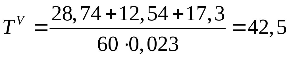Час роботи агрегата на відповідній передачі знаходимо за формулою