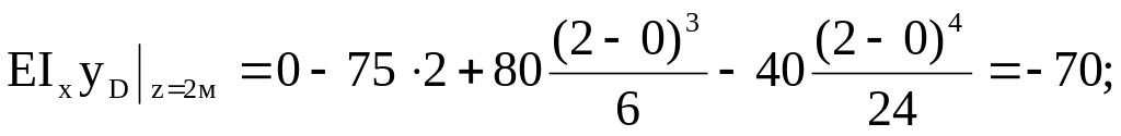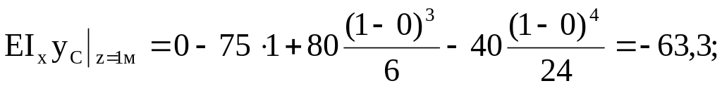 Строим эпюру прогибов в долях от жесткости поперечного сечения. Значение прогиба определяем через один метр.