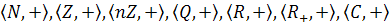 Добре відомими, з школи, прикладами алгебраїчних структур є такі числові множини з традиційними операціями додавання та множення: