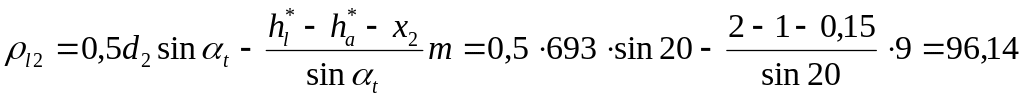 Радиус кривизны профиля зуба шестерни и колеса в точке на окружности вершин