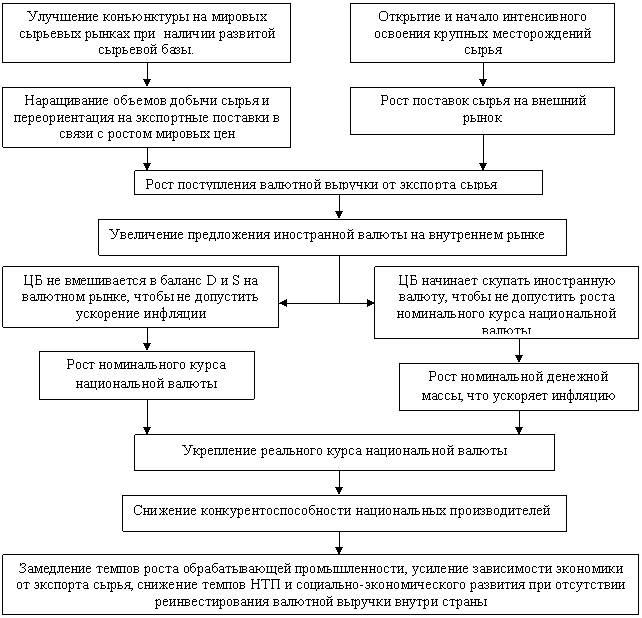 Термин «голландская болезнь» сегодня используется для обозначения такой ситуации, когда укрепление курса национальной валюты, вызванное ростом экспортных поставок сырья, приводит к стагнации промышленного производства и других отраслей национальной экономики.