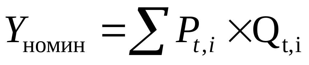 Номинальным ВВП называется валовой внутренний продукт, подсчитанный в реальных (текущих) ценах определенного периода: