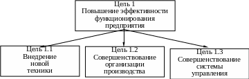 Как видно из рисунка 3.1, для реализации цели 1 "Повышение эффективности функционирования предприятия" необходимо реализовать как минимум три цели: