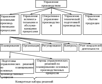 3 . Поскольку УР всегда конкретно, то наименования "Подготовка управленческих решений по планированию основного производства" или "Оценка управленческих решений по планированию основного производства" (как это указано в схеме) не характеризуют конкретное содержание управленческой деятельности и, следовательно, являются функциями управления, выраженными в терминах управленческих решений.