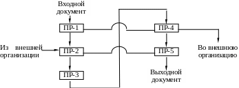 Правило 3. Если для реализации процедуры требуются документы из внешних организаций, то в блок-схеме стрелкой указываются место входа внешнего документа и его наименование или номер.