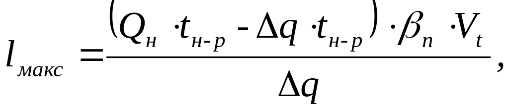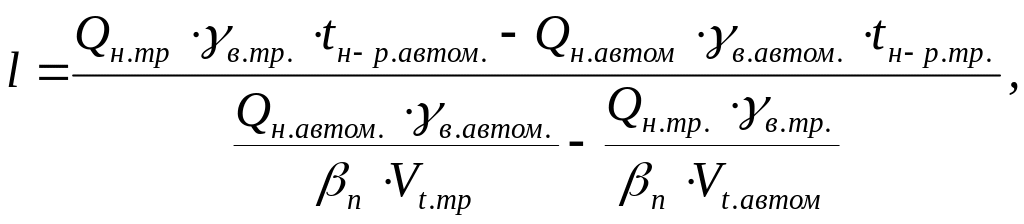 Максимально допустиму віддаль перевезень тракторним транспортним агрегатом порівняно з вантажним автомобілем можна визначити за формулою: