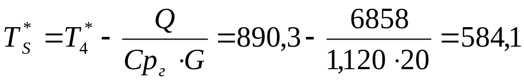 Ответ: Т*R=799,1K, Т*S=584,1 К, P*R=04914 МПа, Р*S=0,1018 МПа, Q=6858 кВт.