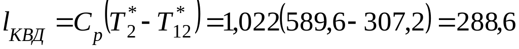 Ответ: Т*2=589,6 К; Р*2=2,3352 МПа; lКВД=288,6 кДж/кг; NКВД=17316 кВт.