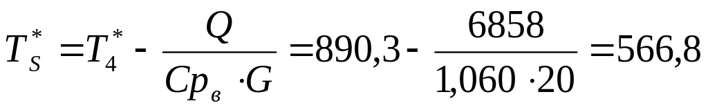 Q = Cрв (Т*R - Т*2) G = 1,060 (799,1 – 475,6) 20,0 = 6858 кВт.