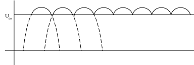Дросель фільтру Lф згладжує як пульсації вихідної напруги випрямляча з частотою 6*f1 = 300 Гц (рис. 1.6), якщо використовується мережа живлення з стандартною частотою f1 = 50 Гц, так і пульсації вхідної напруги інвертора з частотою від 300 до fм (частота перемикань тиристорів інвертора).