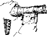 У гранатомета РПГ-7Д розібрати ствол: утримуючи трубу лівою рукою, віджати пальцем важіль механізму блокування, повернути патрубок правою рукою проти годинникової стрілки до упору і відділити його від труби (мал. 5). Якщо після довгої стрільби з гранатомета відділення патрубка від труби утруднено, зафіксувати ключем-викруткою у віджатому положенні важіль механізму блокування; потім одному гранатометнику удержувати трубу, а другому повернути патрубок проти ходу годинникової стрілки.