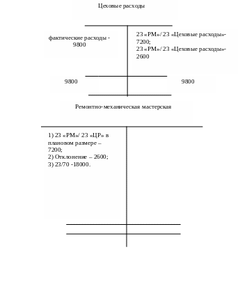 1. Цеховые расходы ремонтной мастерской за год составили 9800 руб. (дебет счета 23 субсчет «Ремонтно-механические мастерские», аналитический счет «Цеховые расходы»).