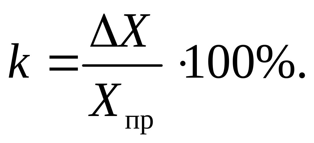 Все электрические приборы характеризуются классом точности k, который равен отношению абсолютной погрешности Х к пределу измерения Хпр. Класс точности указывается на шкале прибора в процентах.