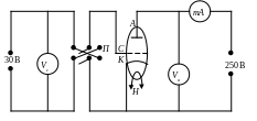 трехэлектродная лампа, два вольтметра, миллиамперметр, переключатель, универсальный источник тока. |