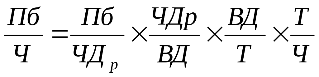 Влияние изменения производительности труда рассчитывается по формуле: