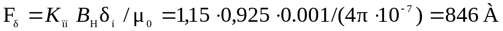 где Kпн = 1,15 - коэффициент, учитывающий наличие паразитных немагнитных зазоров на пути основного, рабочего магнитного потока в начальном положении системы, а также влияние потоков рассеянья и возможное увеличение индукции в отдельных участках магнитной цепи.