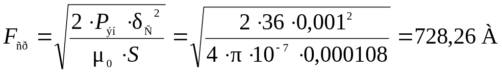 Найдем МДС срабатывания Fср из преобразованной «энергетической» формулы [6]: