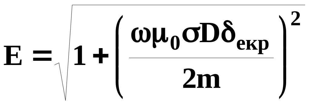 У рівняннях (3), (4) m0 =1.256*10-8 Г/см - магнітна постійна (проникливість вакууму); mr - відносна магнітна проникливість матеріалу екрана; dекр - товщина стінок екрана, см; D - ширина прямокутного (діаметр циліндричного, або сферичного) екрана, см; w= 2pf - кутова частота; f - частота електромагнітного поля, Гц; s - питома провідність матеріалу екрана, См*см3; m - коефіцієнт форми екрана, для прямокутного m =1; для циліндричного m=2; для сферичного m=3.