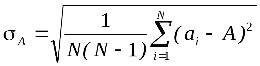 где А – среднеарифметическое значение многократных измерений, ai - результат i-го отдельного измерения, N – число измерений.