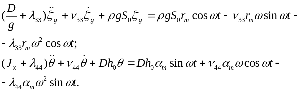 Таким образом, уравнения качки корабля конечных размеров на волнении будут иметь вид: