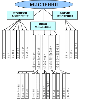 Мислення – процес пізнання, пов’язаний з набуттям нових знань, з вирішенням завдань і творчою перебудовою дійсності. Мислення конвергентного типу спрямоване на пошук єдиного, найкращого вирішення проблеми; мислення дивергентного типу на пошук більшої кількості можливих розв’язань проблеми. Творче мислення характеризується оригінальністю і винахідливістю рішень.