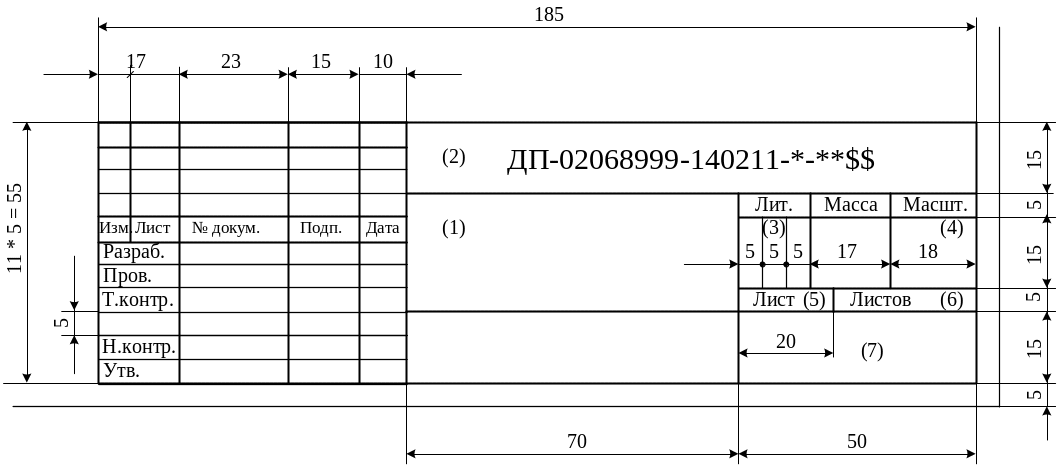 В графах основной надписи (номера граф на рисунке 2 указаны в скобках) указывают следующее: