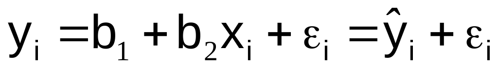 Итак, мы нашли формулы для коэффициентов парной линейной регрессии с помощью МНК и указали условия, при которых этот метод обеспечивает наиболее эффективные оценки для параметров (коэффициентов) парной линейной регрессии. Теперь можно заняться проблемами качества оценки (приближения) объясняемой (зависимой) переменной , а также вопросами нахождения дисперсий и доверительных интервалов для найденных параметров регрессионных уравнений. Но сначала приведем три формулы, которые весьма полезны при оценке качества найденного уравнения регрессии.