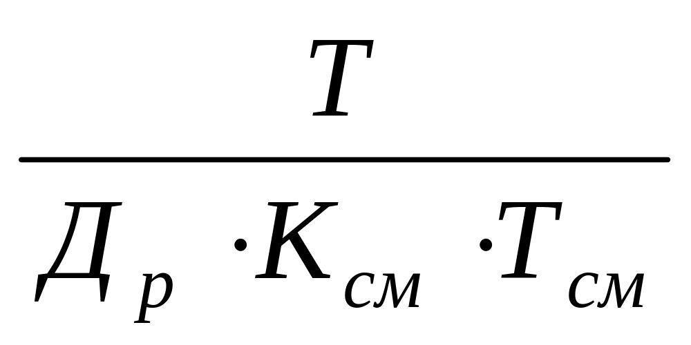 где Т – действительный фонд времени работы линии за определенный период (ч); Р – программа выпуска изделий за тот же период (шт); Др – число рабочих дней в данном периоде; Ксм – коэффициент сменности; Тсм – продолжительности рабочей смены (ч); t – продолжительность операции (ч); К – количество рабочих мест на операции (шт).