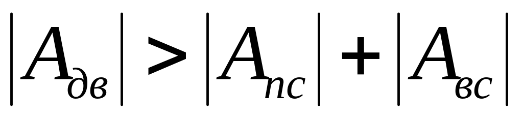 Это условие пуска. Режим пуска возможен, если работа движущих сил больше работы сил полезного и вредного сопротивлений. Таким образом, при разбеге происходит приращение кинетической энергии системы. Работа движущих сил в стадии разбега расходуется на преодоление сопротивлений и приращение кинетической энергии системы.