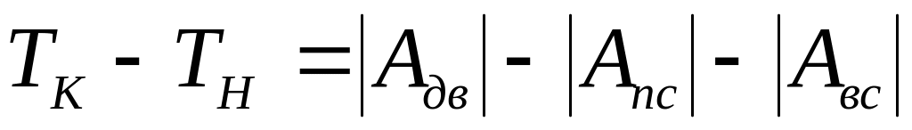 где ТК и ТН – соответственно кинетическая энергия машины в конечный и в начальный момент времени; Адв, Апс и Авс - соответственно работа всех сил движущих, полезного и вредного сопротивлений, подсчитанная на заданном перемещении. Знак работ учтен структурой уравнения.