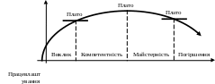 Плато – це короткочасний період внутрішніх самооцінок, рефлексії, він може завершуватися переходом педагога на більш високий професійний рівень або ж, при недостатній мотивації, виходом за межі системи (припинення педагогічної діяльності).