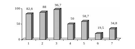 1 – заохочення, 2 – осуд, 3 – навчально-пізнавальна гра, 4 – створення наглядно-образної уяви, 5 – створення ситуації успіху, 6– стимулююче оцінювання, 7 – вільний вибір завдання, 8–задоволене бажання бути значущою особистістю.