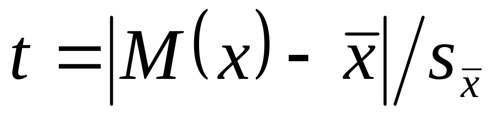 Найденное экспериментальное значение t сравнивают с критичным значением tкр, которое определяют по таблице распределения Стьюдента для заданного коэффициента риска β (см. табл. 6. Приложения) и числа степеней свободы ν. Если t<tкр, то гипотеза о равенстве выборочных средних арифметических значений принимается, а это значит, что выборки взяты из одной и той же генеральной совокупности.