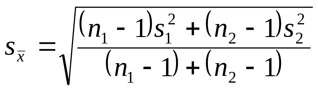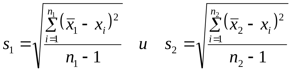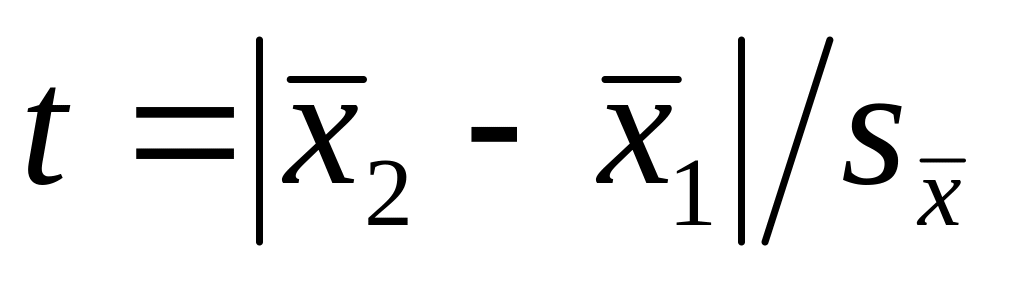 Критерий Стьюдента (t-критерий). Для проверки гипотезы о равенстве двух выборочных средних значений случайной величины, имеющей гауссовский закон распределения, используется критерий Стьюдента. Для применения данного критерия подсчитывают выборочные средние арифметические значения случайной величины х1 и х2, соответственно для выборок n1 и n2, и их выборочные стандартные отклонения