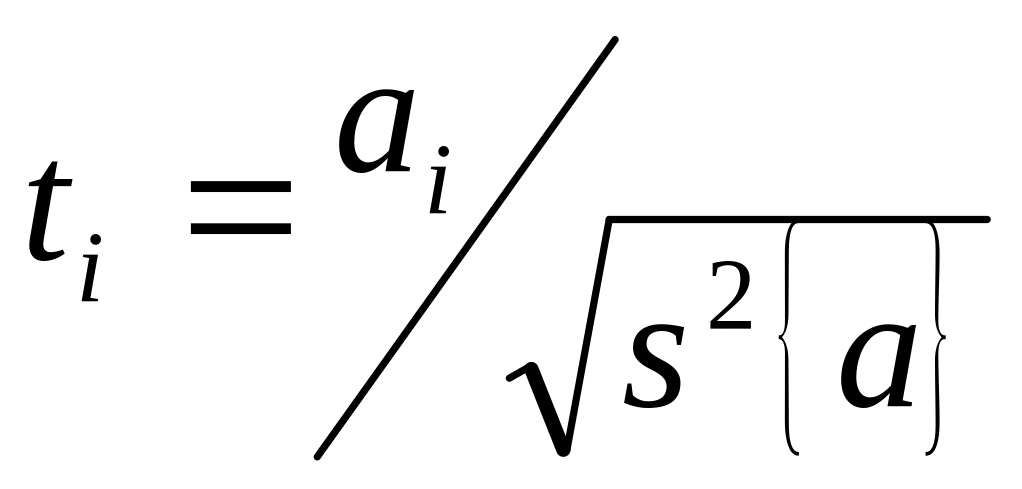 После вычисления коэффициентов имитационной модели, представленной в виде линейного полинома, оценивается их значимость для определения степени влияния различных факторов на выходной параметр (функцию отклика). Основой оценки значимости коэффициентов полинома является сопоставление абсолютного значения, например, коэффициента (ai) и дисперсии ошибки его определения s2{ai}. В этом случае с помощью t-критерия проверяется гипотеза о незначимости рассматриваемого коэффициента, т. е. гипотеза о том, что ai = 0 (проверка нуль-гипотезы). Поэтому при подсчете экспериментального значения t-параметра в числитель ставится абсолютное значение рассматриваемого коэффициента, а в знаменатель — дисперсия ошибки его определения, т. е. для оценки коэффициентов, стоящих в линейных членах полинома, имеем