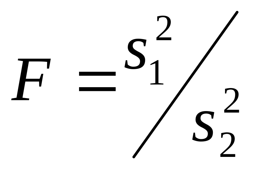 При гауссовском законе распределения случайной величины для проверки гипотезы о равенстве двух дисперсий одной и той же случайной величины, в качестве критерия значимости используется F-параметр, который равен отношению двух рассматриваемых выборочных дисперсий s1 и s2, имеющих соответственно степени свободы ν1 и ν2, т. е.