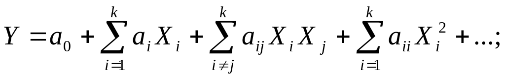 С учетом принятых предположений, зависимость между функцией отклика любого процесса, представленного в виде «черного ящика», и факторами, действующим на его входе, может быть описана в общем виде полиномом любого порядка: