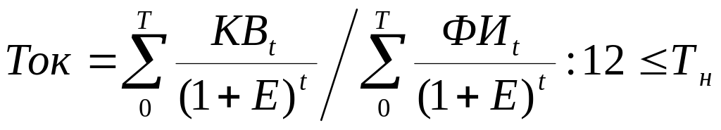 Срок окупаемости не должен превышать нормативный срок жизни (эксплуатации) объекта. Предпочтительно чтобы расчетный срок окупаемости был меньше или равен нормативному сроку. В целом для природоохранных объектов Тн = 12 лет.
