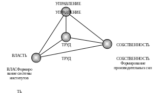 В теории общественно–экономических формаций институты труда и собственности определяют экономический базис: труд относится к производительным силам, институт собственности – к производственным отношениям (рис. 2.3). Институт власти рассматривается как элемент надстройки, а управление относится к хозяйственному механизму, связывающему надстройку с производственными отношениями.