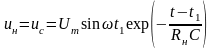 Т.о. начиная с момента времени t1, напряжение на нагрузке будет изменяться по экспоненциальному закону (рис. 2.4,б штриховая линия):
