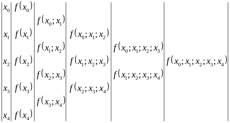 При вычислениях конечные разности удобно записывать в виде таблицы.