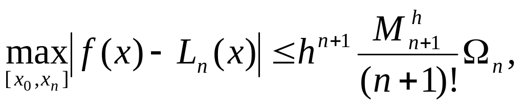 Поэтому оценку максимальной погрешности интерполяции на отрезке можно записать в следующем виде :