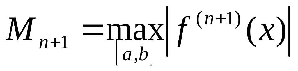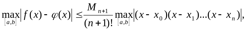 Погрешность интерполяции функции полиномом на отрезке [a,b]=[x0,xn] оценивается формулой: