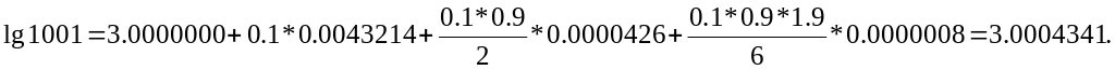 Таким образом, остаточный член может повлиять лишь на девятый десятичный знак. Укажем, что полученное значение lg1001 совпадает со значением в семизначной таблице значений.