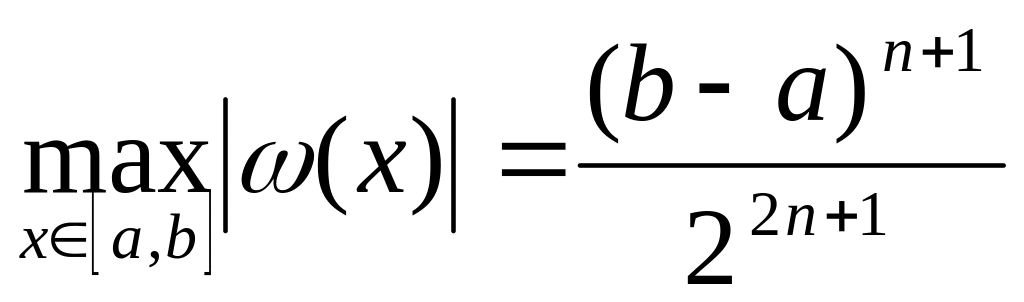 При построении интерполяционных многочленов часто возникает вопрос относительно найвыгоднейшего выбора узлов интерполяции. При неудачном расположении узлов интерполяции хі, верхняя грань модуля погрешности Rn(х) может быть весьма большой. Поскольку f(n+1)(ξ) зависит от свойства функции f(x) и не поддается регулированию, возникает задача о рациональном выборе узлов интерполяции хi так, чтобы полином ω(x)=(х-x0)(х-x1) ...(х-хn) имел наименьшее максимальное значение по абсолютной величине на интервале [а,b]. Эта задача решается с помощью многочлена Чебышева