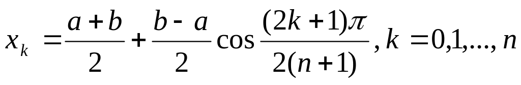 причем за узлы интерполяции нужно брать корни многочлена (11), т.е. точки
