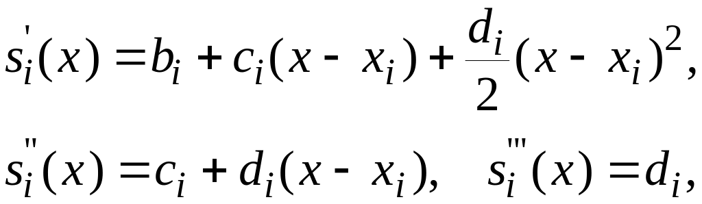 Рассмотрим частный, но распространенный в вычислительной практике случай, когда сплайн определяется с помощью многочленов третьей степени ( кубический сплайн).