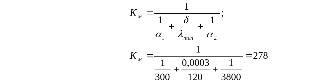 Коэффициент теплопередачи от масла к воде Км в Вт/(м2 ∙ К):