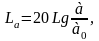 Логарифмічні рівні віброприскорення (La) в дБ визначають за формулою: