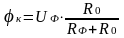 У схемі без повторного заземлення нульового провідника потенціал відносно землі корпуса пошкодженого обладнання, якщо зневажати опором трансформатора та індуктивним опором петлі фаза – нуль, при замиканні фази на корпус визначається залежністю: